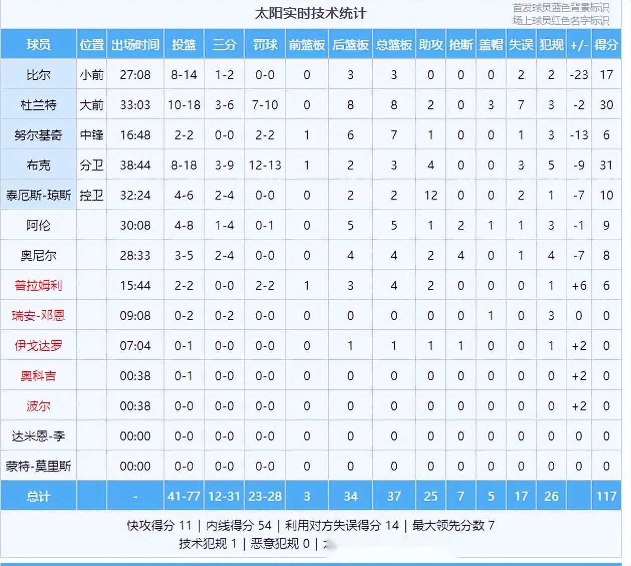 最终爆出大冷门,太阳队主场117-127不敌篮网!杜兰特30分8板7失误,布克31分3失误,比尔17分2失误,三巨头失误太多了,防守又不好。马丁30分,施罗德29分,两人是赢球的最大功臣。崔永熙很开心,赛后和队友庆祝,还和杜兰特拥抱一下,这比赛值了。