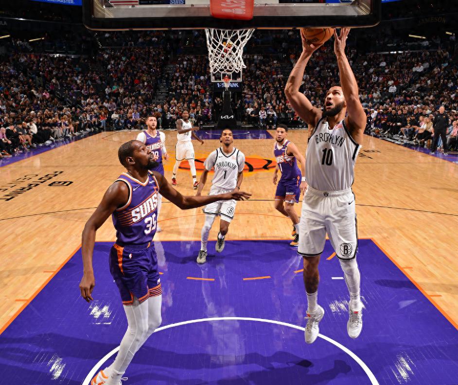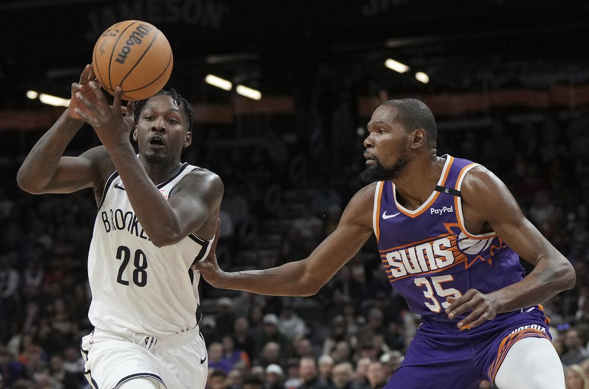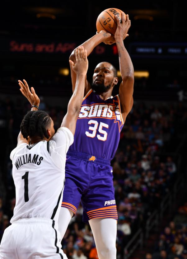 杜兰特、比尔在对阵湖人的比赛中复出,三巨头合计拿下72分狂胜湖人,这场比赛太阳三巨头继续一同登场打东部第八的篮网,费尔南德斯调整先发让西蒙斯去对杜兰特,别说西蒙斯、芬尼史密斯轮番限制KD有效的,杜兰特上半场只拿下10分而已。