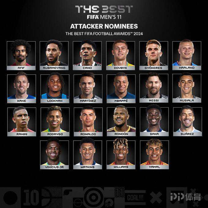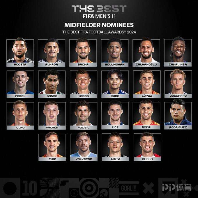FIFA官方公布了男足最佳11人阵容的候选名单,该名单前中后场均有22人候选,门将则是11人。本次的候选名单共计77人,人员遍布全球,除南极洲外,所有大洲均有球员入选。新科金球奖得主罗德里领衔该名单,梅西、C罗、凯恩、姆巴佩等众多巨星在列。