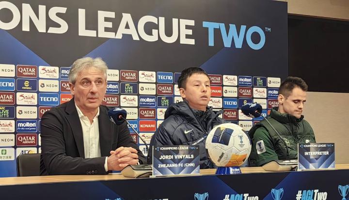 北京时间11月28日,亚冠二级联赛小组赛,浙江队主场4-2逆转狮城水手。赛后,浙江队主教练乔迪携比赛最佳球员弗兰克出席新闻发布会。