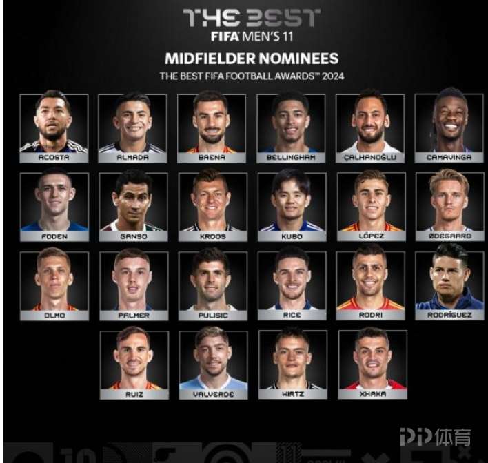 国际足联公布2024年度各大奖项候选名单,以下为男足部分。