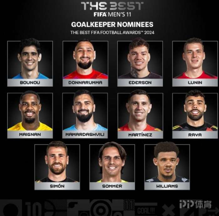布努(摩洛哥)、唐纳鲁马(意大利)、埃德松(巴西)、卢宁(乌克兰)、迈尼昂(法国)、马马达什维利(格鲁吉亚)、马丁内斯(阿根廷)、拉亚(西班牙)、乌奈·西蒙(西班牙)、佐默(瑞士)、龙恩·威廉斯(南非)