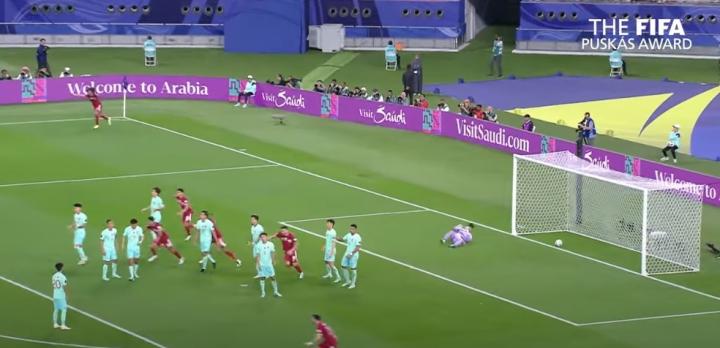 2024年1月22日(注:该时间为北京时间,以下同理),亚洲杯小组赛,卡塔尔队1-0中国队,哈桑-海多斯破门得分。中国男足成为了普斯卡什奖的“背景板”之一。