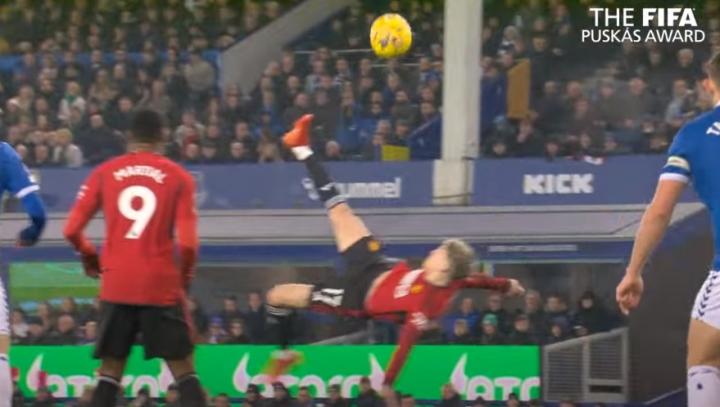 2023年11月27日,2023-24赛季英超联赛第13轮,埃弗顿0-3曼联,曼联球员加纳乔用一脚“惊天倒钩”帮助球队打破场上僵局,这粒进球,也让整个古迪逊公园球场内一片惊叹。