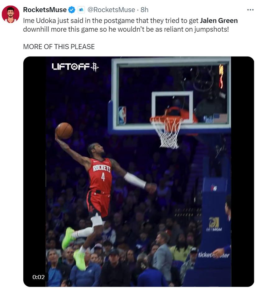 乌度卡在赛后透露了格林效率暴涨的关键:我们试图让格林在挡拆后更多顺下攻框,这样他就不会那么依赖跳投。(此役格林与申京的挡拆后的确更多顺下攻框,效果也很好)