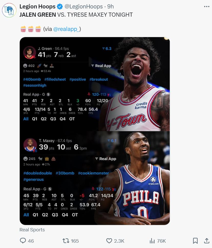 这场比赛对于格林来说很罕见,非常罕见,这是格林本赛季首次以超过75%真实命中率拿下25+的比赛,本赛季杰伦-格林的单打效率、投篮效率均为生涯新低,场均只有4个罚球,而本场比赛格林14个罚球创新高。