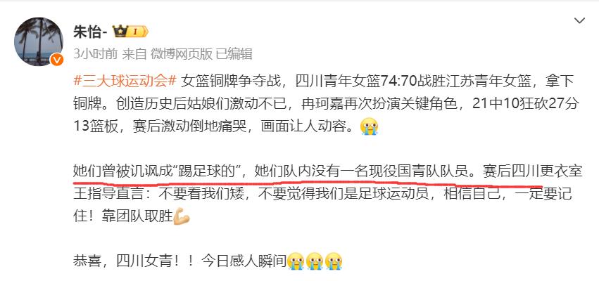 74比70,2024年女篮三大球运动会第三名争夺战,四川女篮在一度落后两位数的分差的情况下,最终上演大逆转,击败江苏队,成功拿到第三名,获得铜牌之后,四川女篮也创造了历史。尽管未能拿到冠军,不过,在赛后四川队球员却激动不已,不少人已经热框满盈。曾经一度被讥讽是临时拼凑的足球队,却在这一次三大球女篮比赛中,斩获季军殊荣,在没有任何一名现役国青队国手的情况下,他们确实值得尊敬。也是这一次三大球运动会上最疯狂的黑马。
