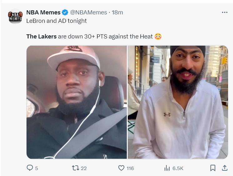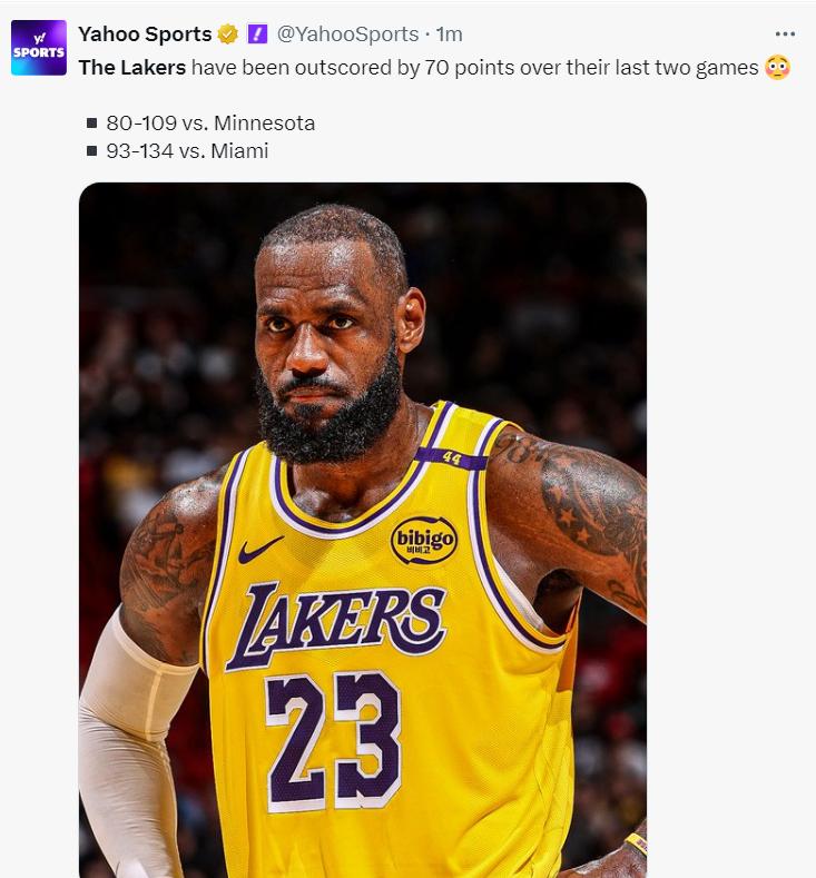 美媒调侃:这个夜晚的詹眉是这样,他们合力只拿到30分。