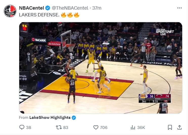 湖人本场比赛防守端的缩影,就连邓肯-罗宾逊空切到篮下都没人去防,邓罗三秒区停球后才有人去追,这还防啥?