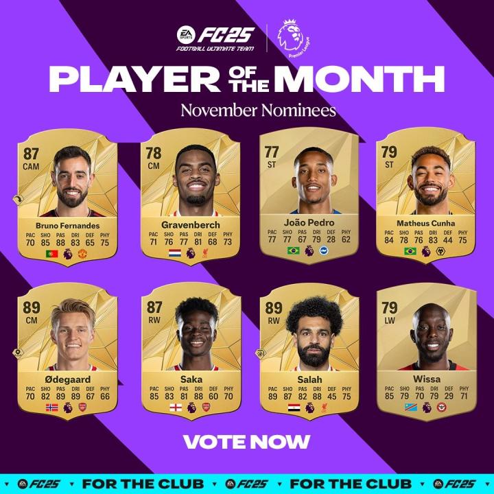 官方消息,英超11月最佳球员候选名单公布,萨拉赫领衔,厄德高、布鲁诺-费尔南德斯、萨卡、赫拉芬贝赫等人在列。