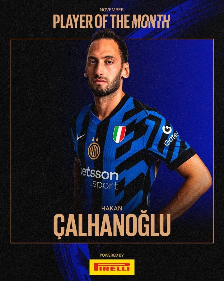 北京时间12月5日晚,国际米兰官方公布了俱乐部11月最佳球员,中场核心恰尔汗奥卢成功当选。