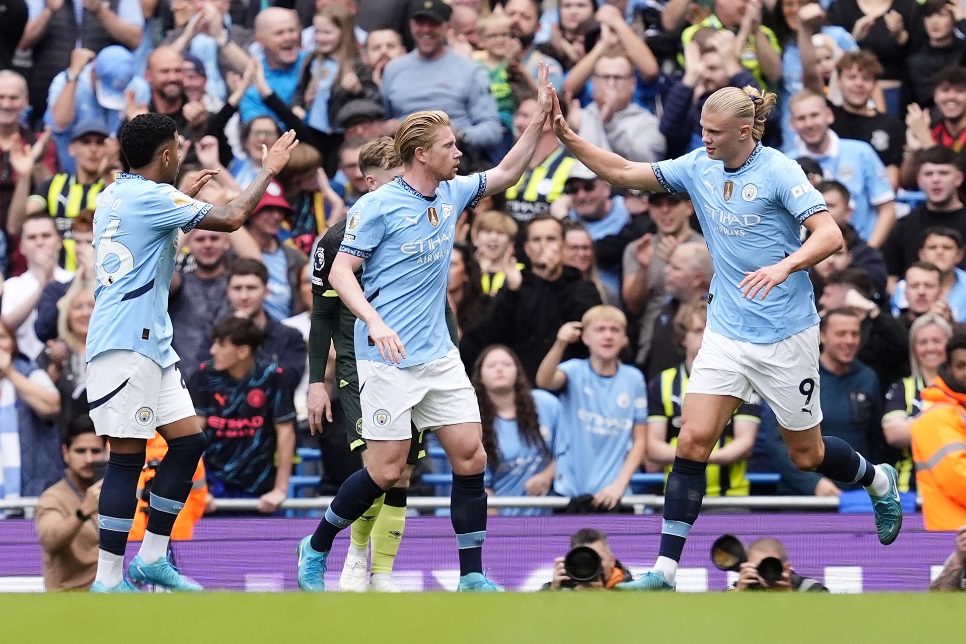 开场8分钟,曼城闪击得手,京多安左路传中,德布劳内头球攻门被挡了一下,B席门前抢点将球垫进球门。第31分钟,多库左路精彩过人后送出助攻,德布劳内禁区内爆射破门扩大比分。而在下半场第57分钟,哈兰德中场拿球后助攻,多库内切兜射打进死角,曼城最终3-0大获全胜。