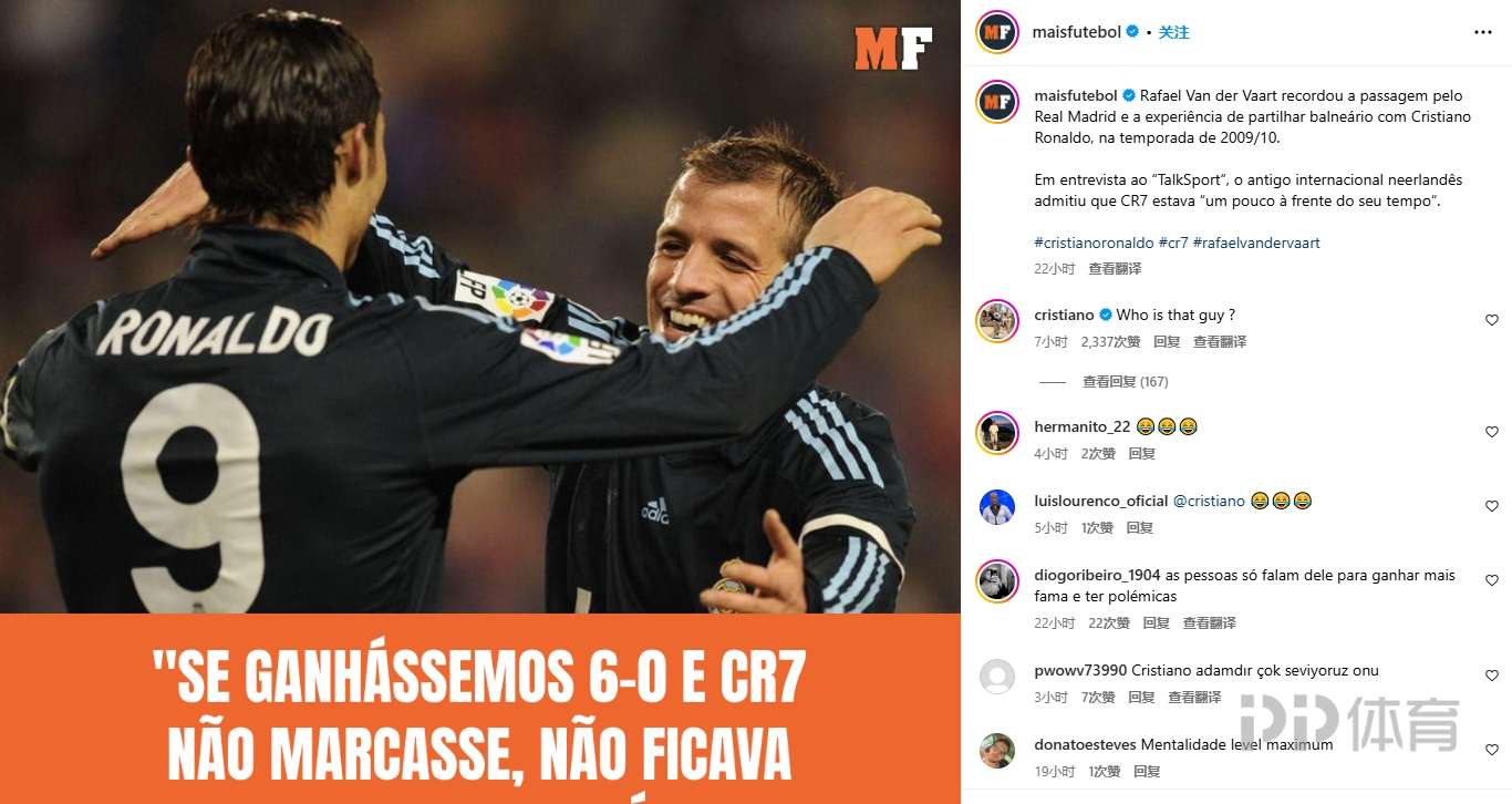 葡媒只转发了范德法特谈C罗在意进球的言论:“如果我们赢了6-0,但C罗没进球,他不会高兴,他是自私的。”C罗社媒评论到:“他是谁?”