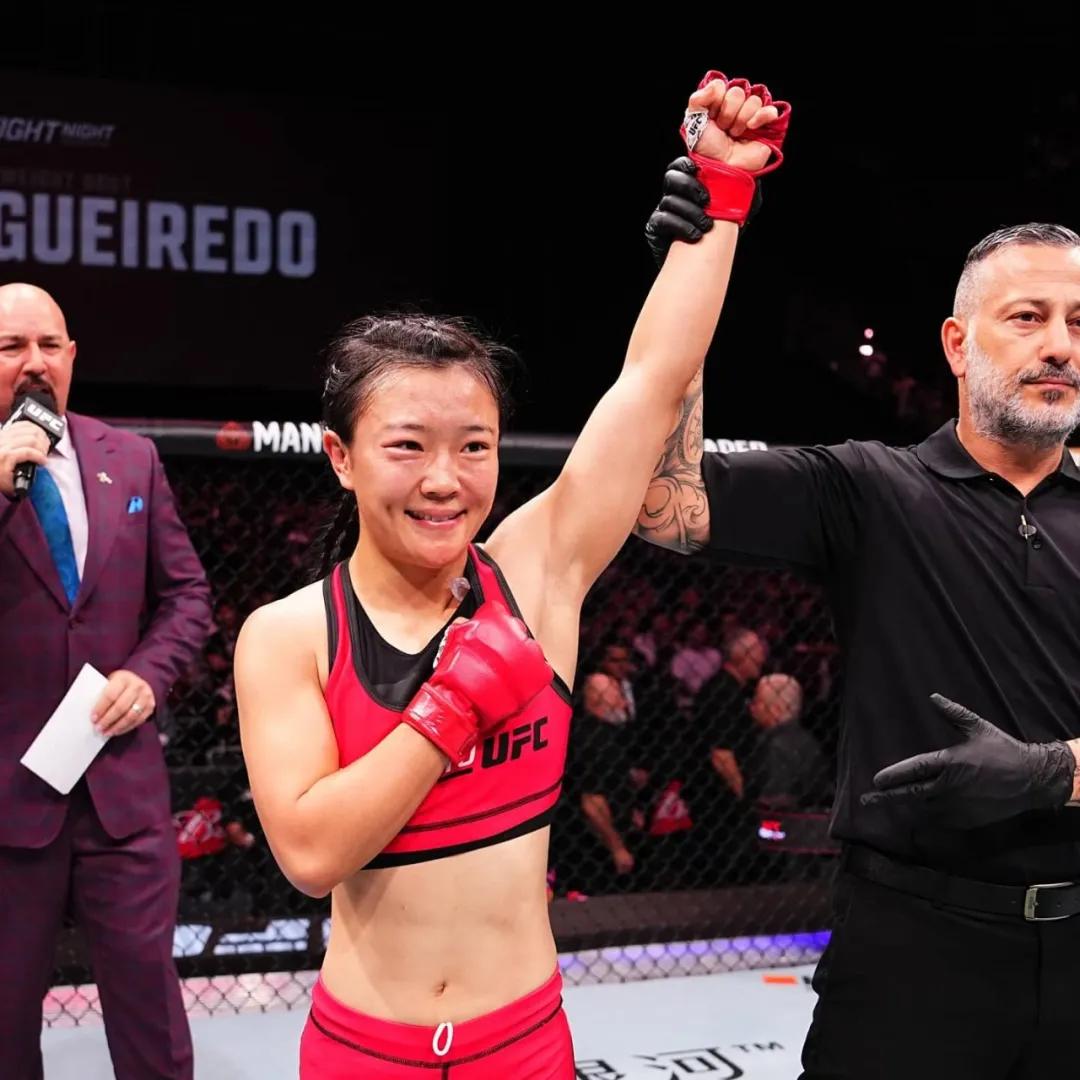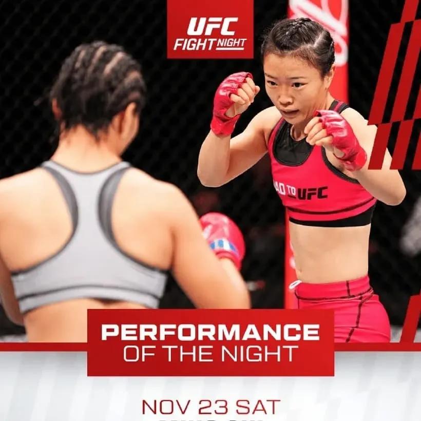 这一切,源自于一场UFC精英之路的决赛,同时也是关乎能否拿到UFC正式合同的晋级赛。在11月23日晚的2024 UFC格斗之夜澳门站的比赛中,石铭在前面两局处于下风的状态下,在第三局找到机会以一记扫踢KO冯萧灿,夺得了UFC精英之路第三季女子草量级的冠军。