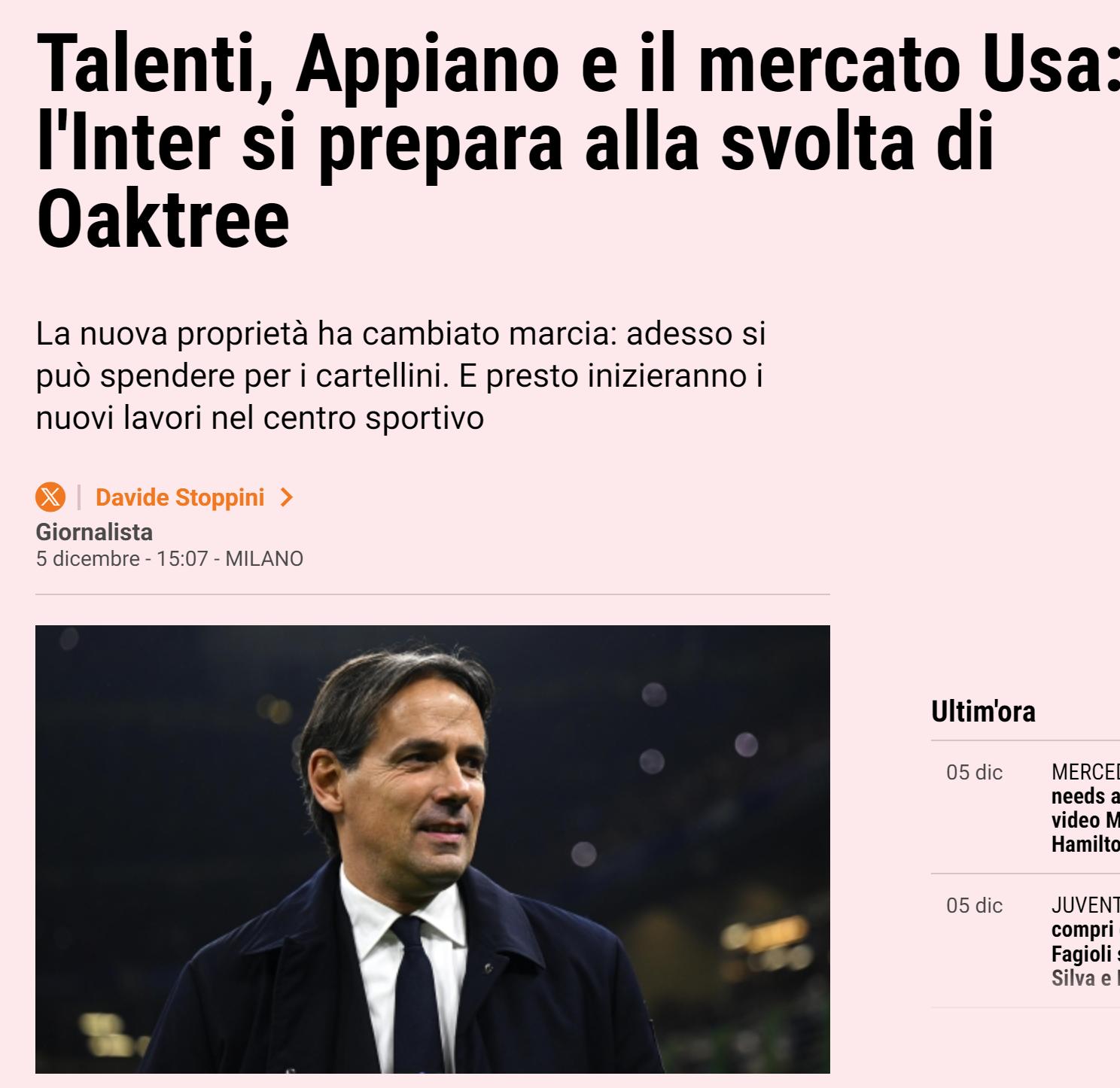 今天出版的《米兰体育报》用头版一角和多个版面论述: 在橡树资本入主国米半年之后,蓝黑军团将在建队引援策略方面,酝酿半年内的第二次重大转型——降低薪资的同时,更敢花转会费 。