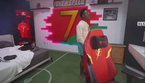 日前,19岁美国知名网红“甲亢哥”IShowSpeed晒出自己花10万美元(约合人民币72.6万)打造的游戏直播屋,在这间屋子内,他配置了很多他的偶像C罗以及喜欢的动漫人物路飞的元素。