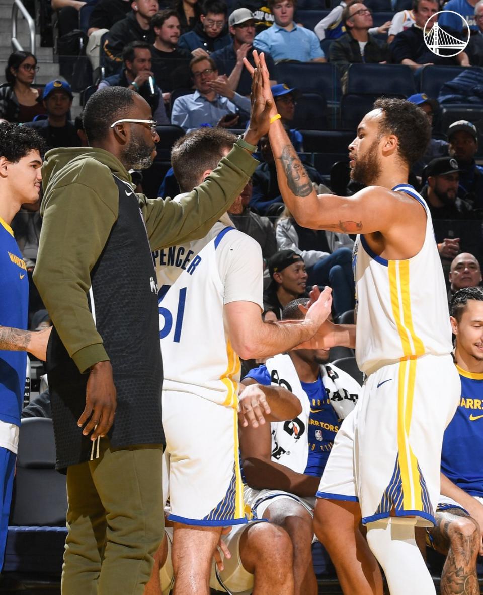 勇士:威金斯23分9篮板,库明加33分6篮板,鲁尼4分10篮板,波杰8分12篮板,李凯尔8分。