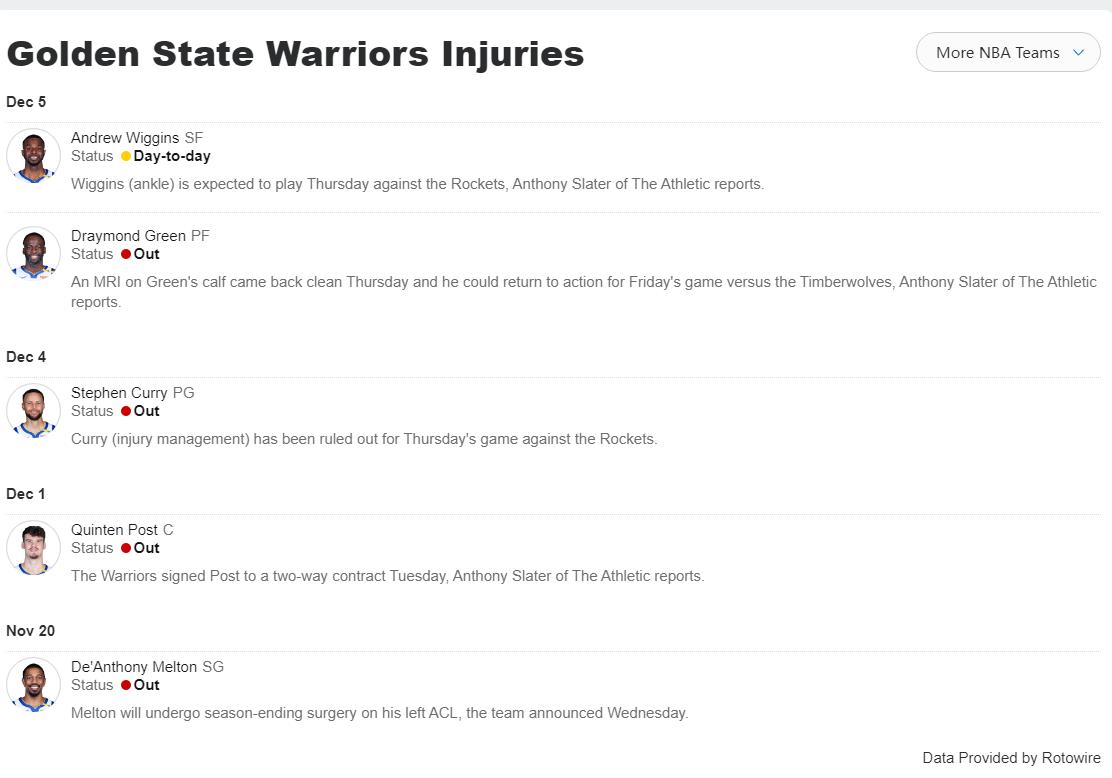 库里、追梦这场比赛都缺席。火箭这边伊森也缺席。