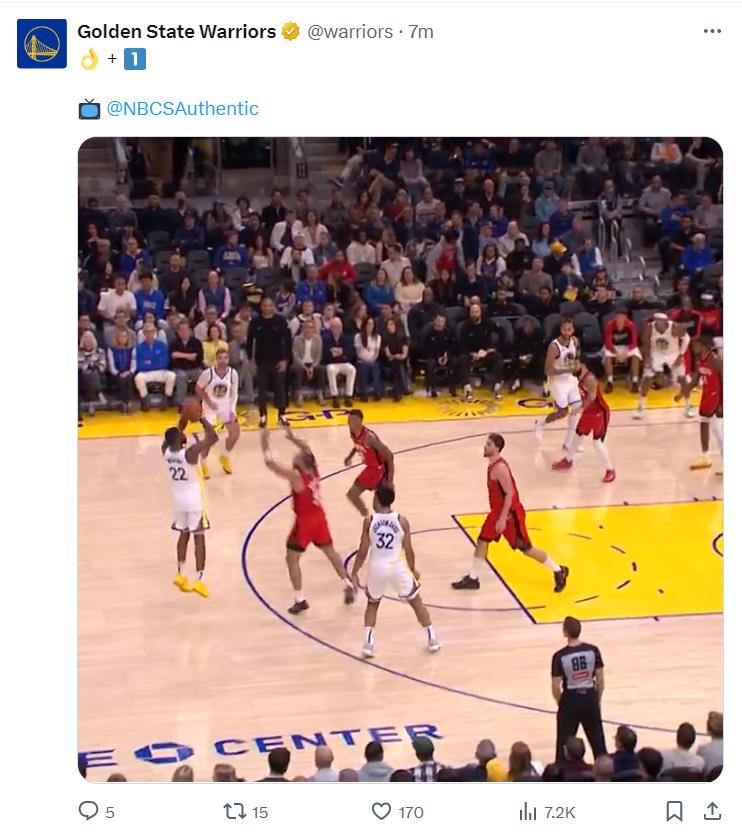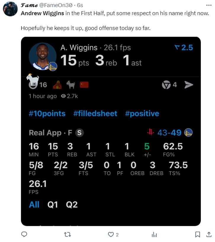 库里与追梦已经在场下为嘴哥欢呼了,大通中心都在欢呼威金斯的名字,这个第二节就是嘴哥的表演秀。第三节开场嘴哥又命中一个三分,威金斯三节打完26分钟,11中6+三分3中3拿到18分5篮板1助攻2抢断1盖帽。