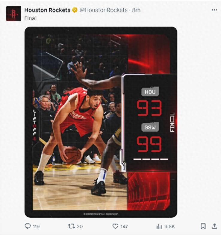 北京时间12月6日,火箭以93-99惜败勇士吞下二连败。这场比赛是火箭本赛季第二次输给勇士,也是跨赛季的15连败,这已经算是一个魔咒。申京15中7,格林16中4,范弗利特16中5,史密斯8中2,手感都不佳,阿门成为唯一亮点。