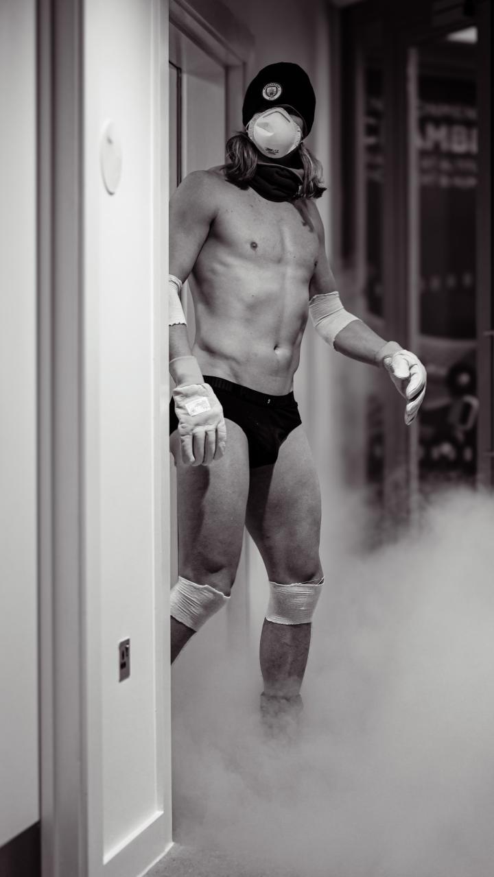 照片中,哈兰德全副武装,他戴着口罩、帽子与手套等护具,防止这些部位冻伤,同时,也能清晰的看到哈兰德的肌肉。
