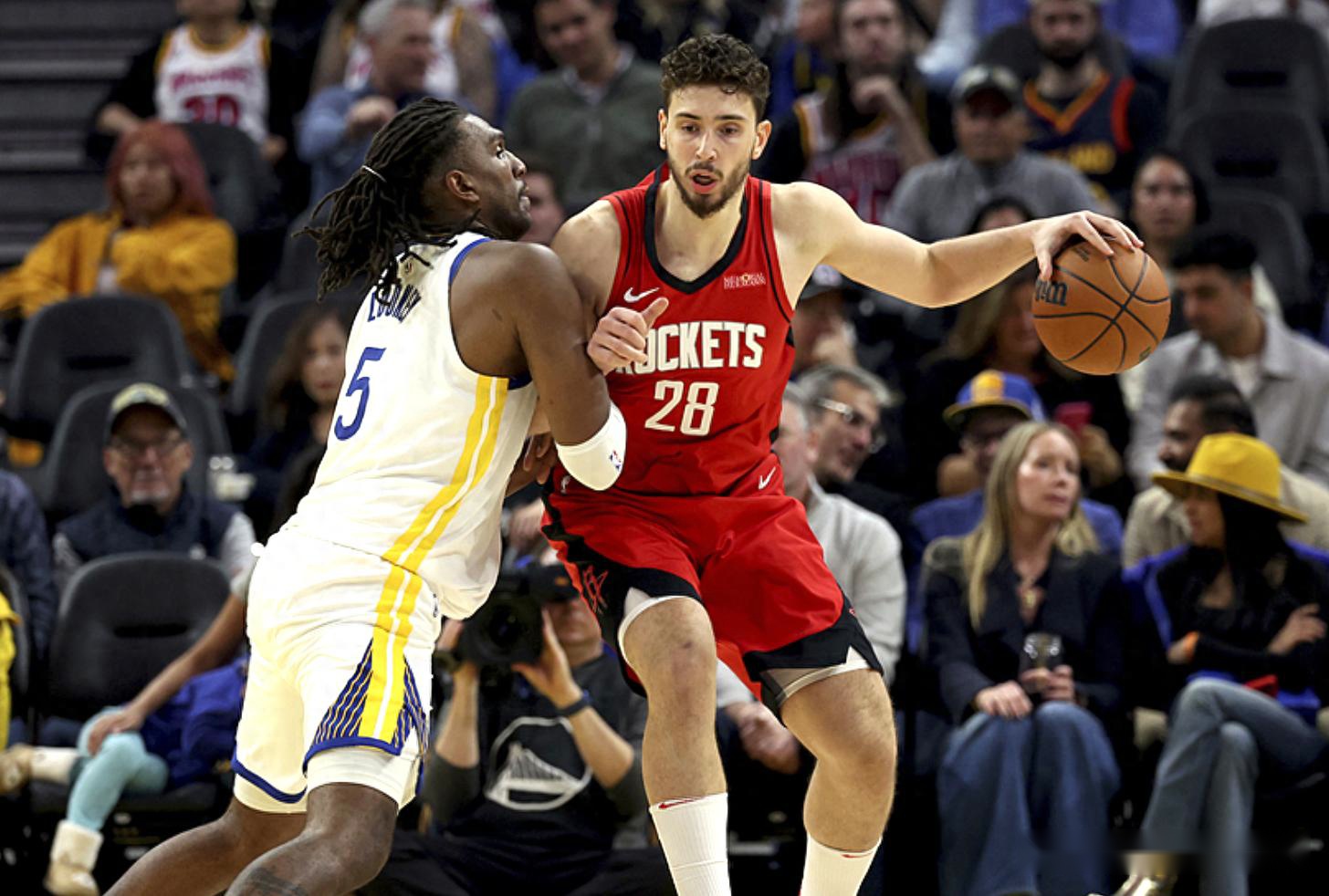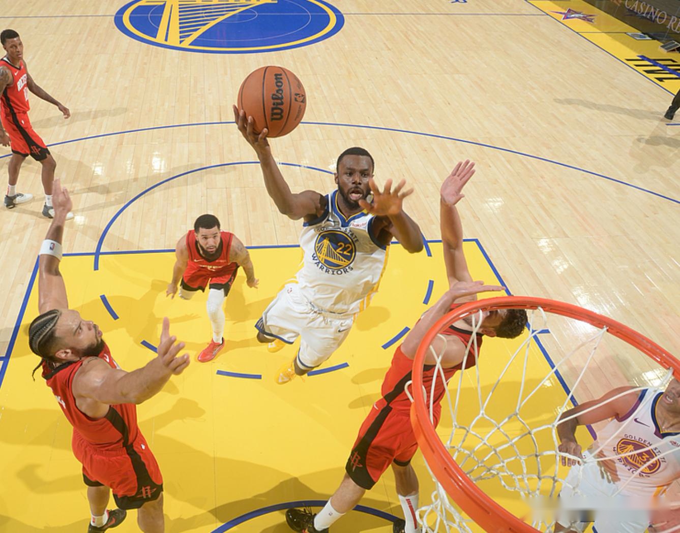 第二节比赛,小佩顿、波杰姆、库明加6-0反超2分,阿门汤普森、谢泼德反超2分,希尔德三分,申京、霍勒迪、杰伦格林回应,火箭领先5分,威金斯、戴维斯、李凯尔得分,申京、狄龙回应,分差4分,威金斯3+1追平分差,狄龙中投,穆迪、卢尼连得5分,勇士反超3分,狄龙2罚1中,威金斯再次3+1,半场战罢勇士49-43领先。威金斯半场15分3板,阿门汤普森11分4板。