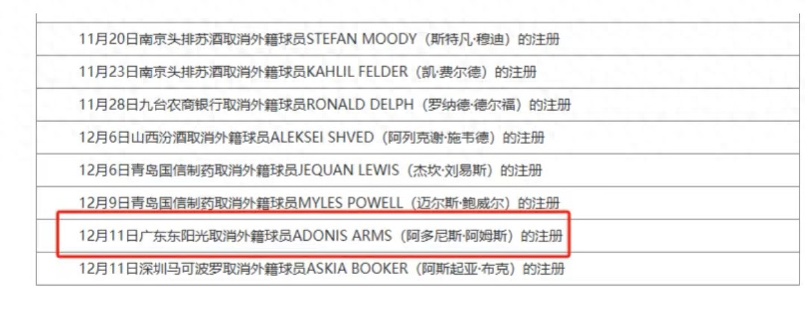 朱芳雨终于出手了,12月11日广东男篮注销外援阿姆斯的注册,这意味着广东正式裁掉阿姆斯,队内剩余外援还有莫兰德、吉伦沃特。