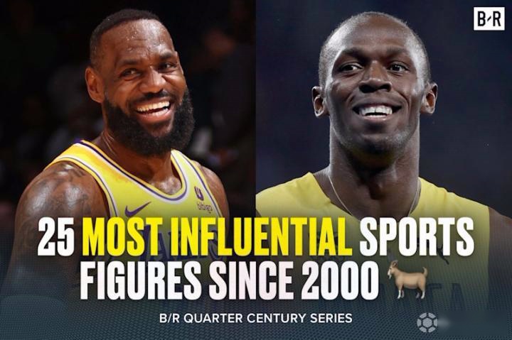 在2025年到来之际,美国著名媒体《看台报告》(B/R)评选了21世纪前25年中,最具影响力的25名运动员,其中,詹姆斯库里排名前2,梅西第5,C罗第9,博尔特仅仅只有第21名。