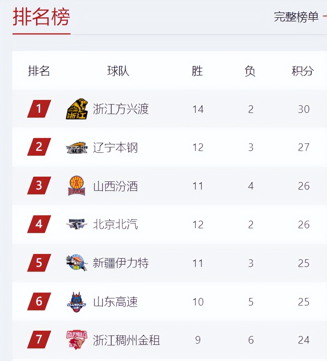 目前CBA积分榜上,其实已经形成四种局势。首先是积分榜榜首之争,目前,广厦以14胜2负,暂居积分榜第一位。辽宁队紧随其后,战绩是12胜3负。山西队排在第三位,他们的战绩是11胜4负。北京队和新疆队都少打了1-2轮,在积分榜排名上稍微吃亏,北京队12胜2负,位居第4。新疆队则是11胜3负,排在积分榜第5位。这五支球队将是CBA榜首之争的五大球队。
