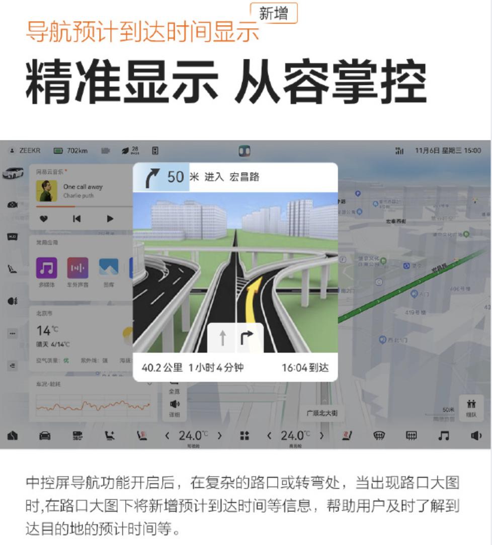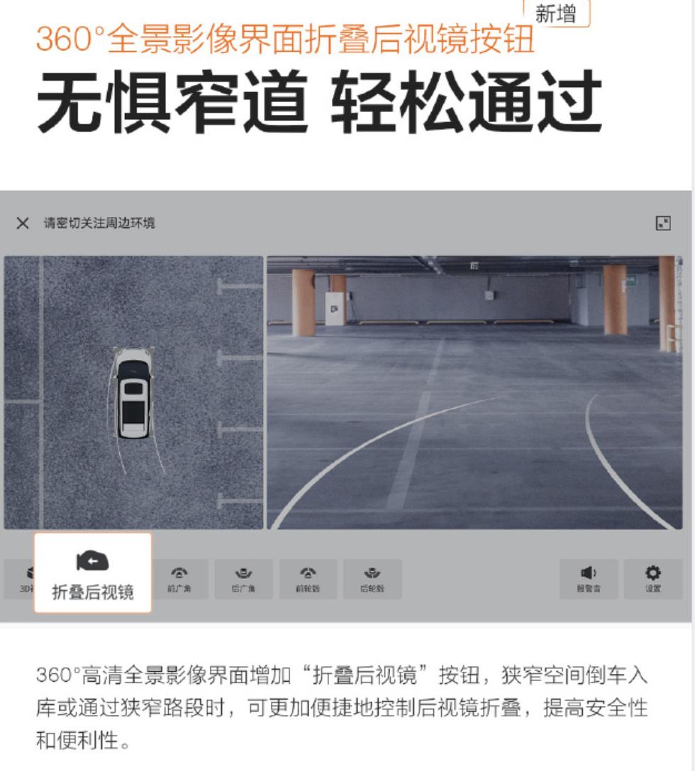 此次更新新增的头枕音响模式等功能更方便车主在车内选择声音的输出方式,优化了导航显示方式以及通过狭窄路段时的后视镜控制,车内队外喊话功能也放方便了车主在车内与其他车主沟通,不过要注意使用方式,正确使用。