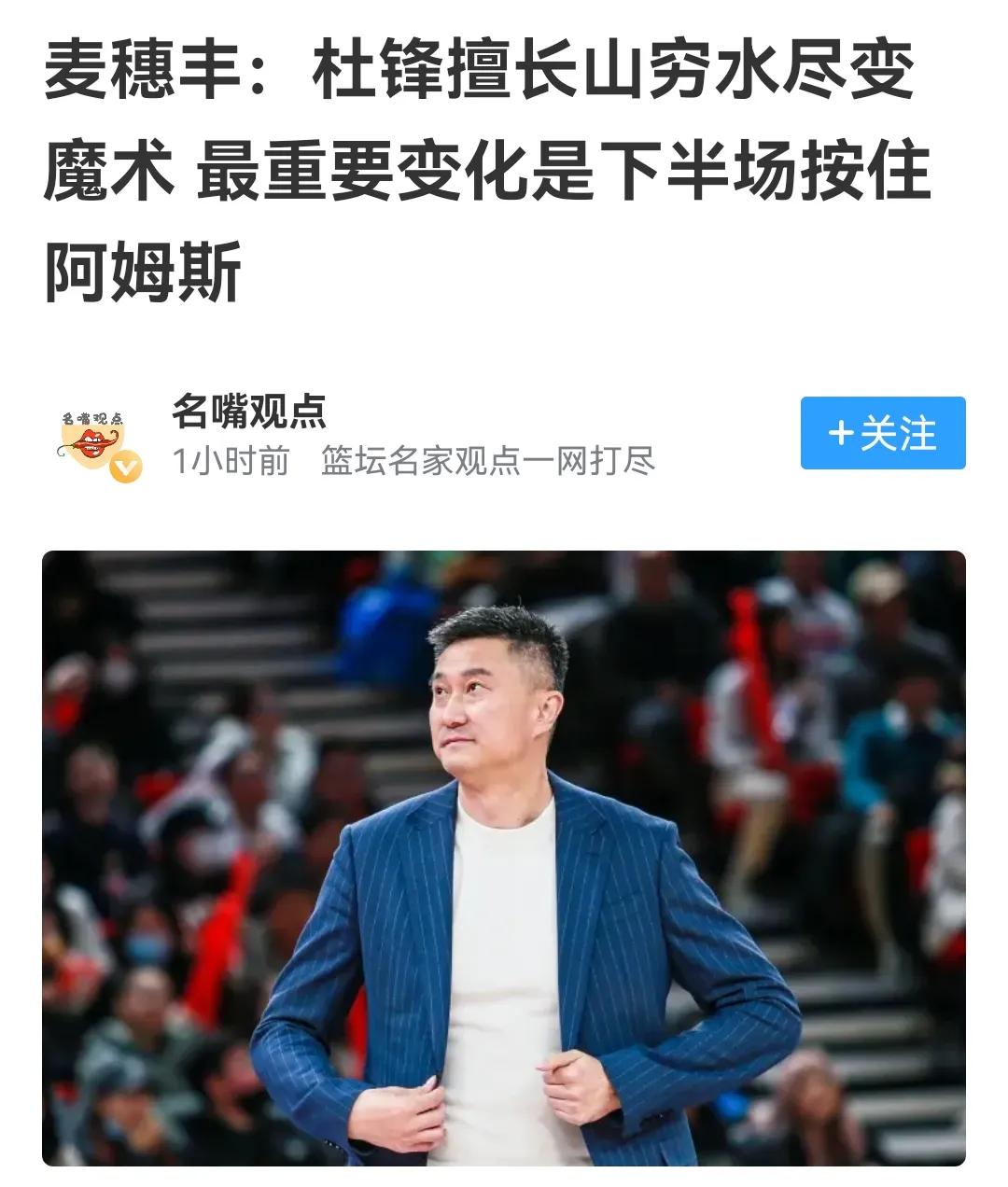 这称号层级很高,杜锋当之无愧