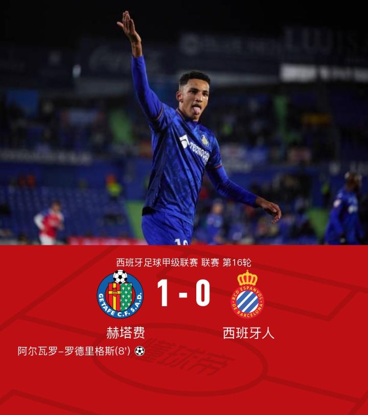 在西班牙足球甲级联赛第16轮的较量中,赫塔费坐镇主场迎战西班牙人。比赛中,赫塔费的阿尔瓦罗-罗德里格斯接到队友米利亚的精妙传球,成功攻入一球。凭借这一进球,赫塔费以1-0小胜西班牙人,取得了比赛的胜利。