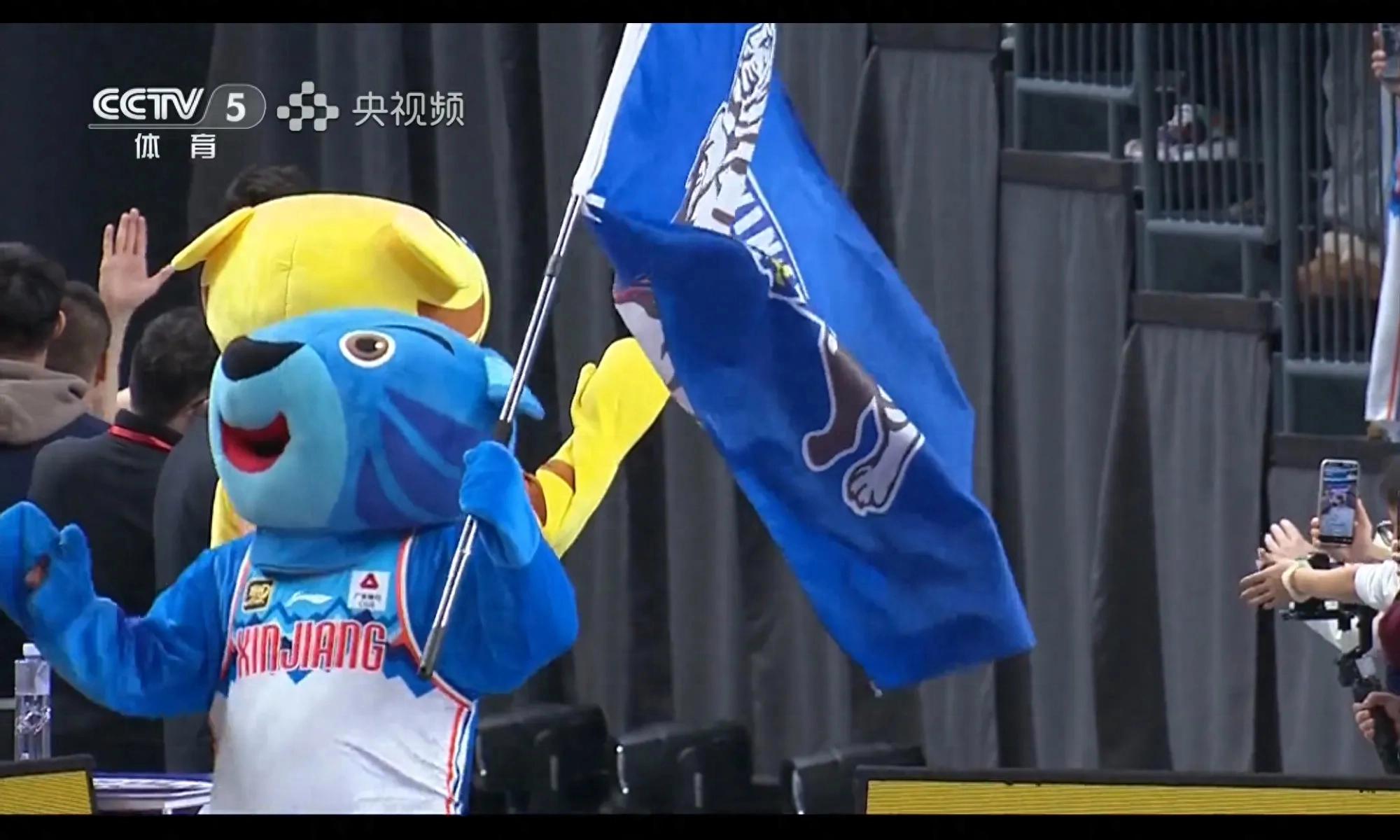 新疆队大胜辽宁20分后,吉祥物和球迷都很高兴