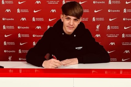 这位16岁的小将在社交媒体上晒出了自己与利物浦签约的照片,并配文:“很高兴与利物浦签约,我迫不及待想要开始了,YNWA。”