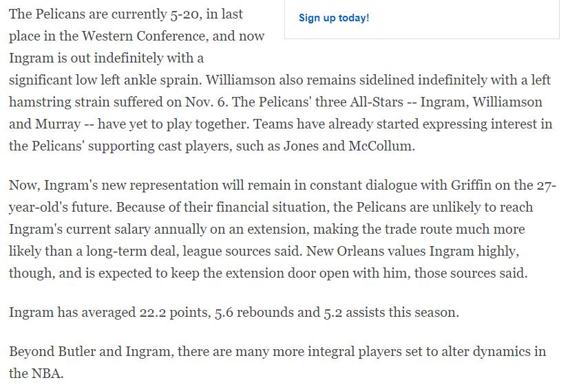 鹈鹕内部对英格拉姆的评价很高,鹈鹕的大门将一直为英格拉姆打开,双方的矛盾点应该是在续约的金额与年限上。