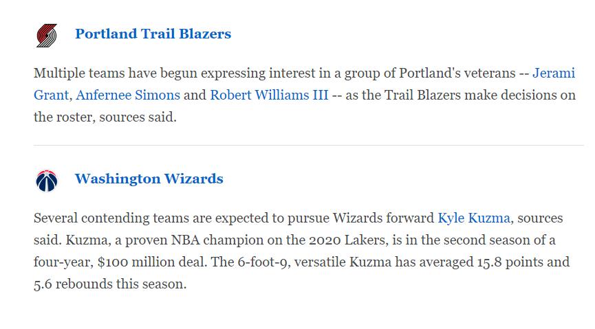 开拓者方面他们已经决定将杰拉米-格兰特、安芬尼-西蒙斯、罗威摆上货架。