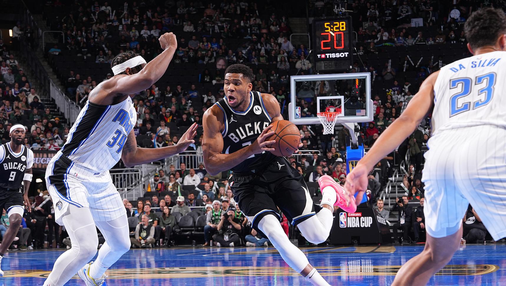 比赛的最后一波三折,雄鹿三节结束领先8分,但第四节很快就被对手缩小差距,魔术在萨格斯的带领下,一度实现反超,主场作战的雄鹿处于绝境,关键时刻,利拉德站了出来,他先是通过三分球帮助雄鹿扳平比分,在对手两罚中一之后,利拉德突破上篮让雄鹿领先1分,之后他又两罚全中,帮助雄鹿领先魔术3分,最后5秒,字母哥的两罚全中,以及最后2.2秒,利拉德的两罚全中,让雄鹿锁定胜局,晋级NBA杯四强。