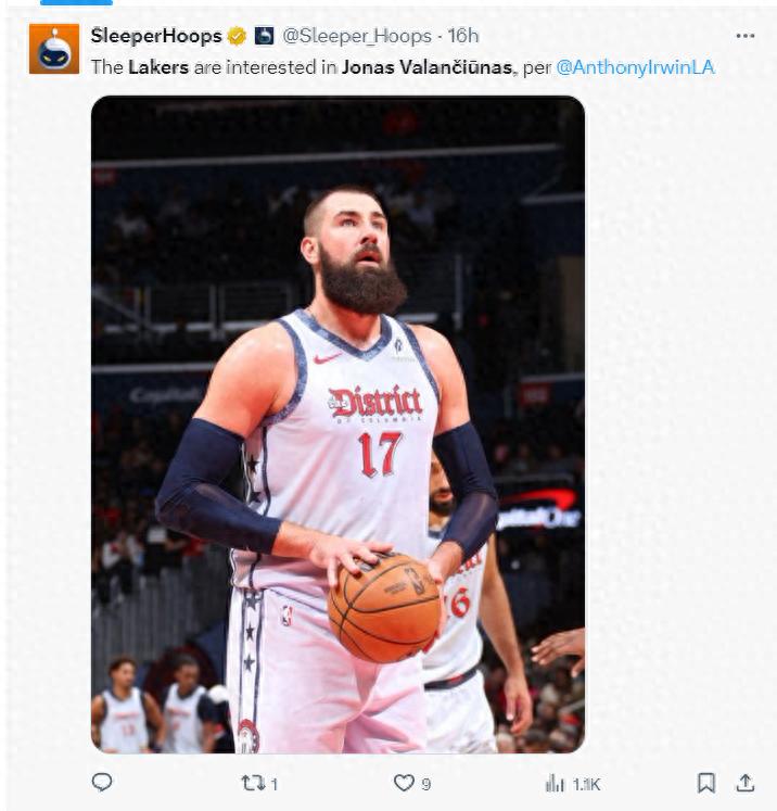 其实在10月底就已经曝出,湖人在自由市场上找寻一位合格的五号位,瓦兰、罗威都是湖人的意中人。目前瓦兰场均12.6分8.1篮板2.2助攻0.4抢断0.9封盖。