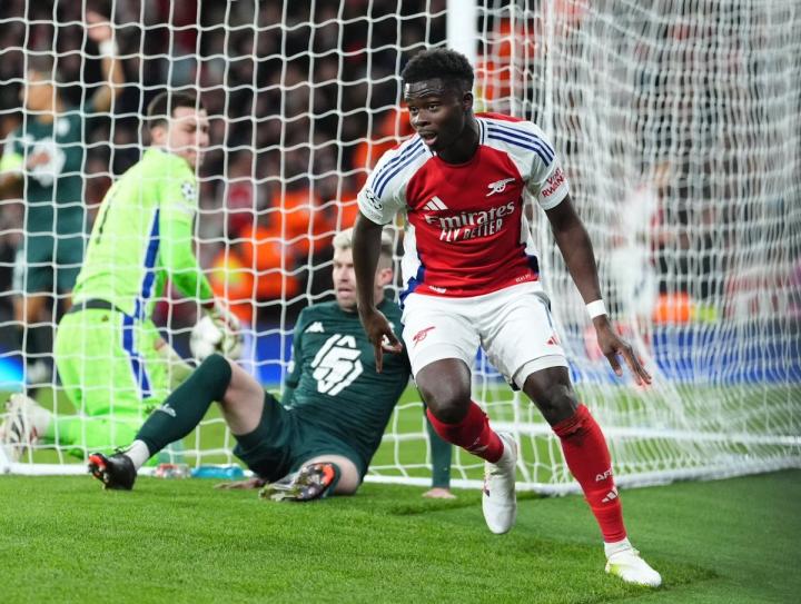 本赛季至今,萨卡代表阿森纳在欧冠出场5次已直接参与5球,包括4球1助。