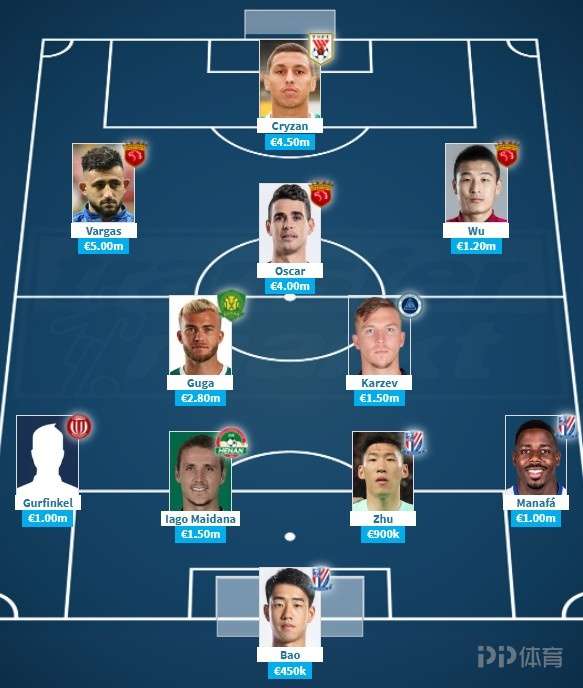 前卫:巴尔加斯(500万)、奥斯卡(400万)、武磊(120万)
