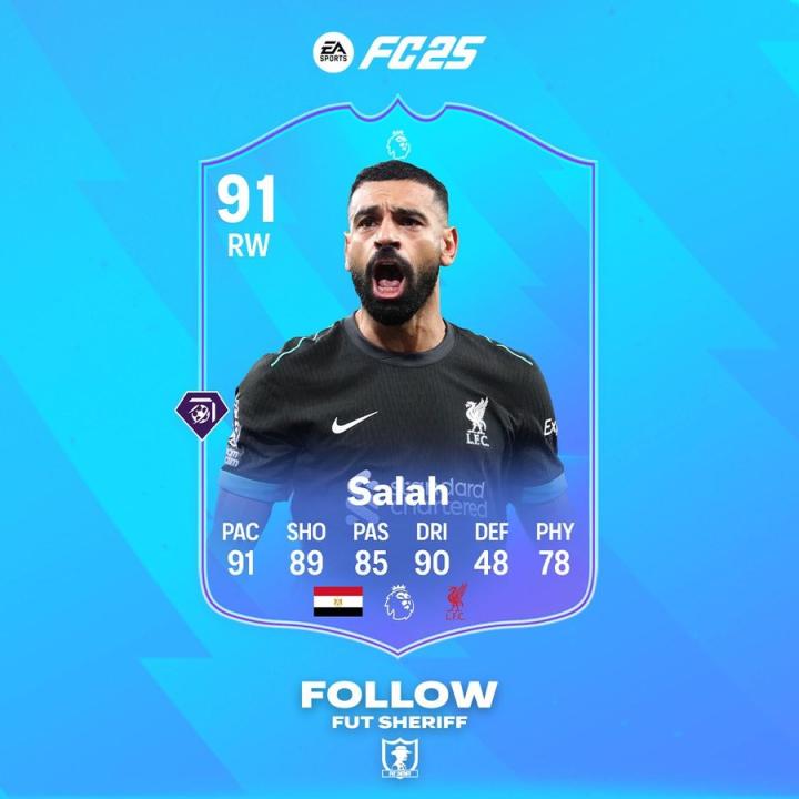 据知名FC游戏泄露博主FutSheriff透露,利物浦球员萨拉赫当选11月英超月最佳球员。