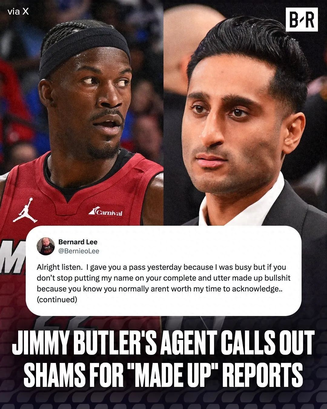巴特勒经纪人伯纳德-李连续更新社媒,突然对爆料者Shams 了炮轰。