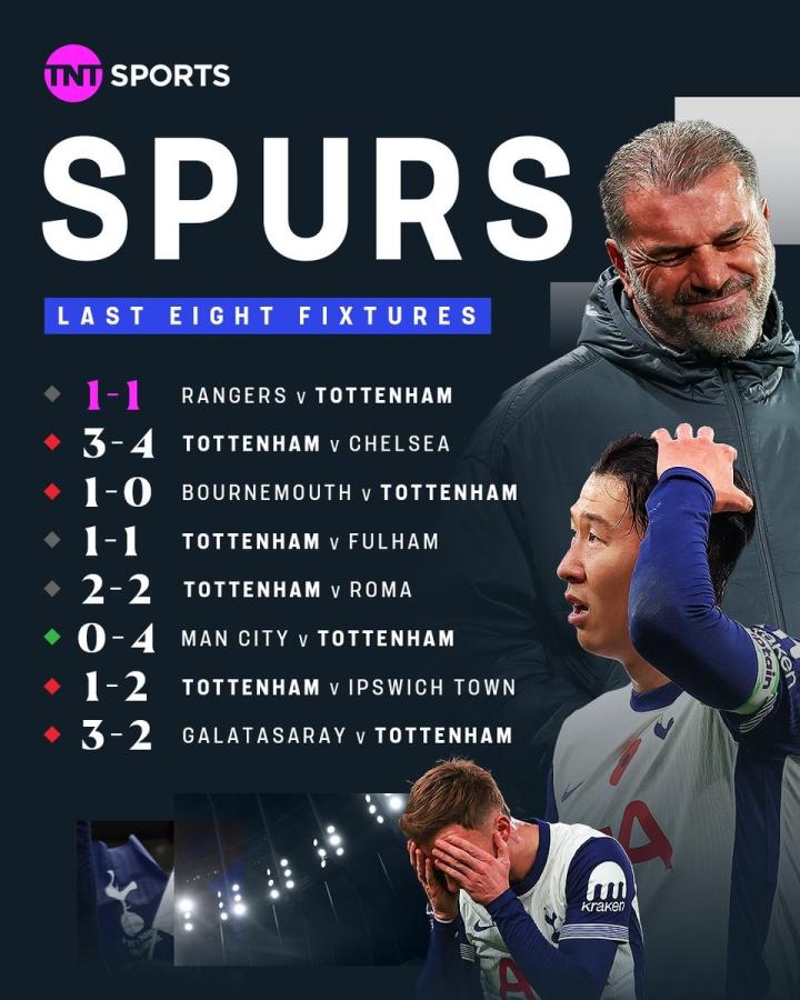 在波斯特科格鲁的带领下,热刺最近一个月战绩低迷,在1-1战平格拉斯哥流浪者后,热刺各项赛事最近8场比赛战绩为1胜3平4负,唯一一场胜利是11月下旬英超客场4-0大胜曼城,而且最近5场比赛未尝一胜。