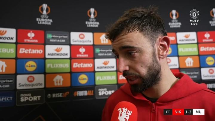 在欧联杯第6轮客场2-1逆转击败比尔森胜利之后,曼联队长布鲁诺-费尔南德斯接受了来自俱乐部官方电视台的采访。