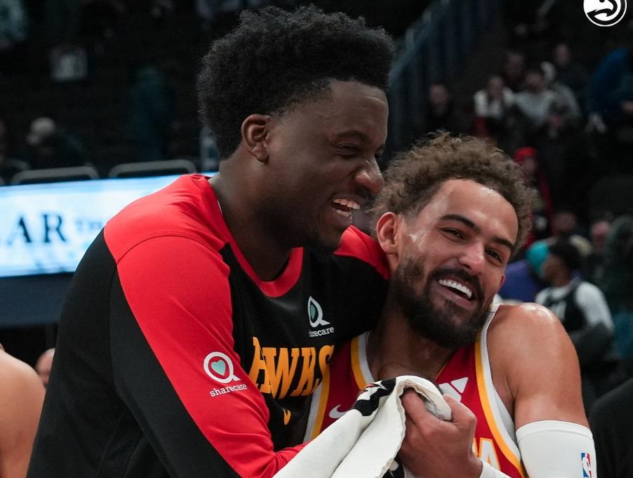 老鹰为什么这么强?球队攻防效率都是联盟20名左右水平,投篮命中率联盟第18,三分球命中率联盟第24位,看起来并不亮眼。但问题的关键,在于他们强大的锋线,以及特雷杨的统筹调配。和火箭类似,老鹰在过去几年也囤积了不少优质的球员,比如21年首轮20顺位的杰伦约翰逊,当初有球队愿意拿出两个首轮签,老鹰都不卖,本赛季场均19.8分10.1篮板5.6助攻,限制对手命中率联盟前五,被视作球队未来的基石!再比如锋卫摇摆人亨特,连续8场作为替补砍下至少18分以上,场均22.4分+51.8%的命中率。