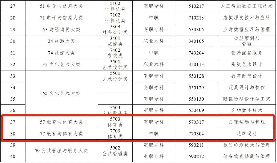 值得一提的是,本次职业教育专业增补工作,落实到了足球运动的招生专业当中——聚焦加快建设体育强国,增设足球运动、足球运动与管理等专业。其中在高职专科首次增加了足球运动与管理专业,在中职首次增加了足球运动专业。这是今年教育部在普通高校新增足球运动专业后,在足球方面的又一大举措。