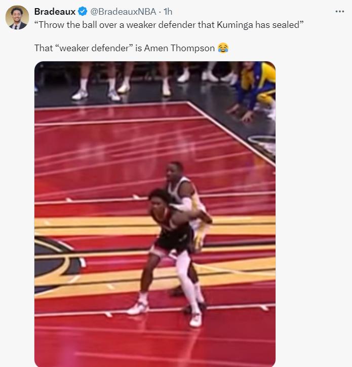 休媒回复:你把阿门-汤普森说成防守较弱的球员?哭笑脸。(阿门是火箭队锋线防守仅次于伊森的球员)