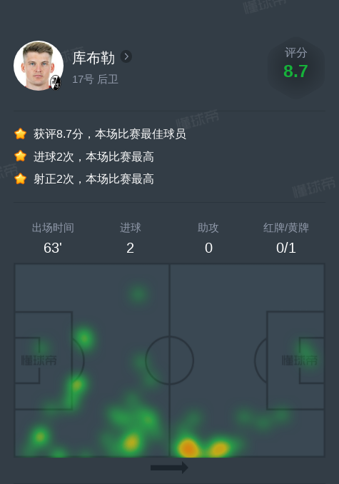 北京时间12月14日弗赖堡vs沃尔夫斯堡,库布勒贡献2球,2次射门。