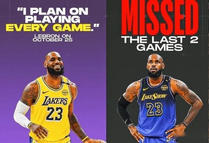 美媒Clutch Points发布了关于詹姆斯出勤情况的消息,詹姆斯本赛季计划打满全部比赛的目标宣告结束,他已经缺席了湖人最近的两场比赛 。