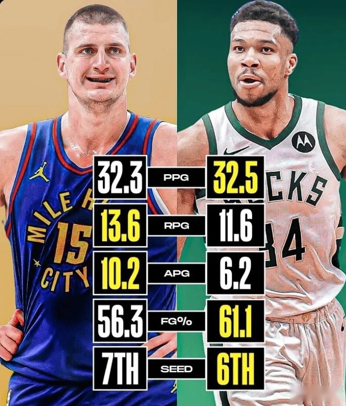 美媒更新动态,转发了约基奇和扬字母哥的数据。